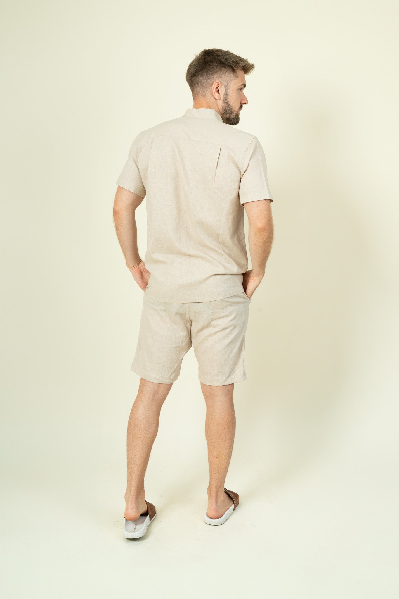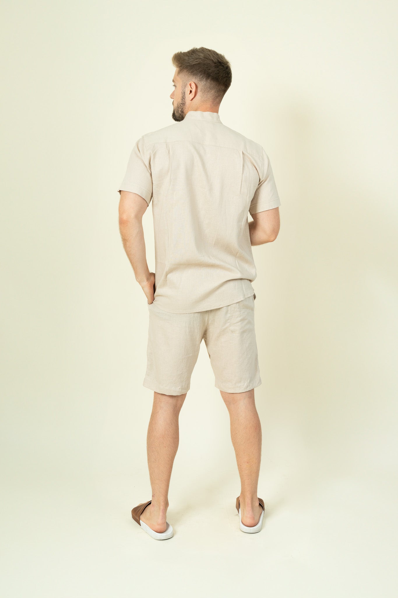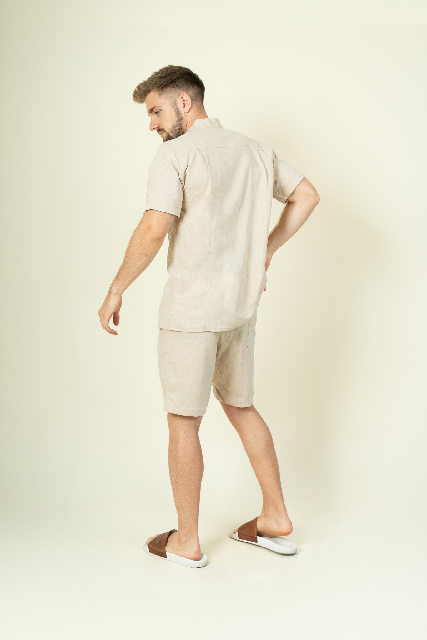 Beige Mens Linen Shirt Short Sleeves